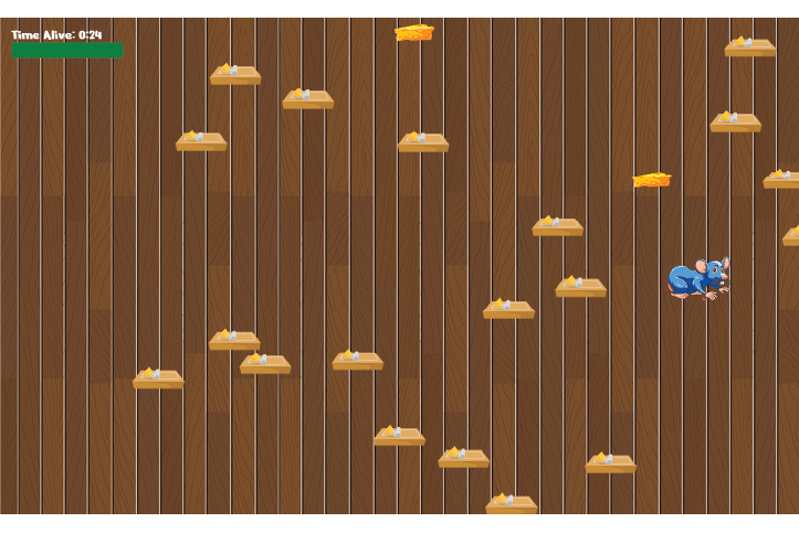 The color theme consist of 4 color, the primary color used for the player is #27a6de, for the background and rat trap is #9e876e, and for the cheese is #f7c22a.